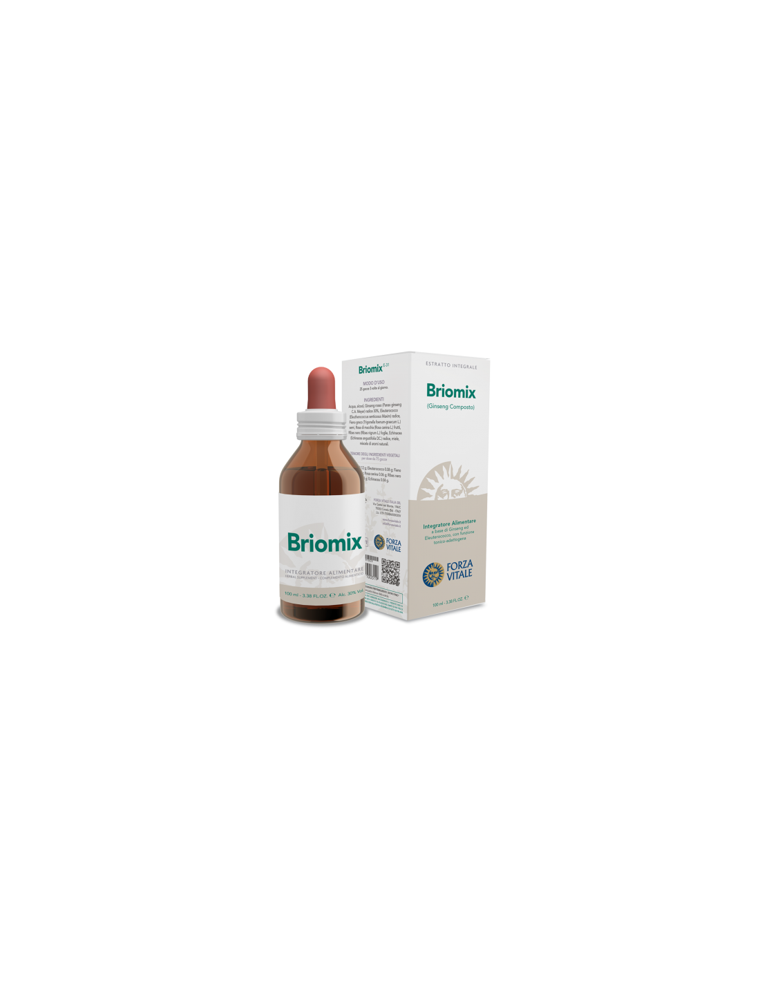 Acqua, Alcool, Ginseng rosso (Panax ginseng C.A. Meyer) radice 30%, Eleuterococco (Eleutherococcus senticosus ùmaxim) radice, Fieno greco (Trigonella foenum-graecum L.) semi, Rosa di macchia (Rosa canina L.) frutti, Ribes nero (Ribes nigrum L.) foglie, Echinacea (Echinacea angustifolia DC.) radice, Miele, Miscela di aromi naturali.